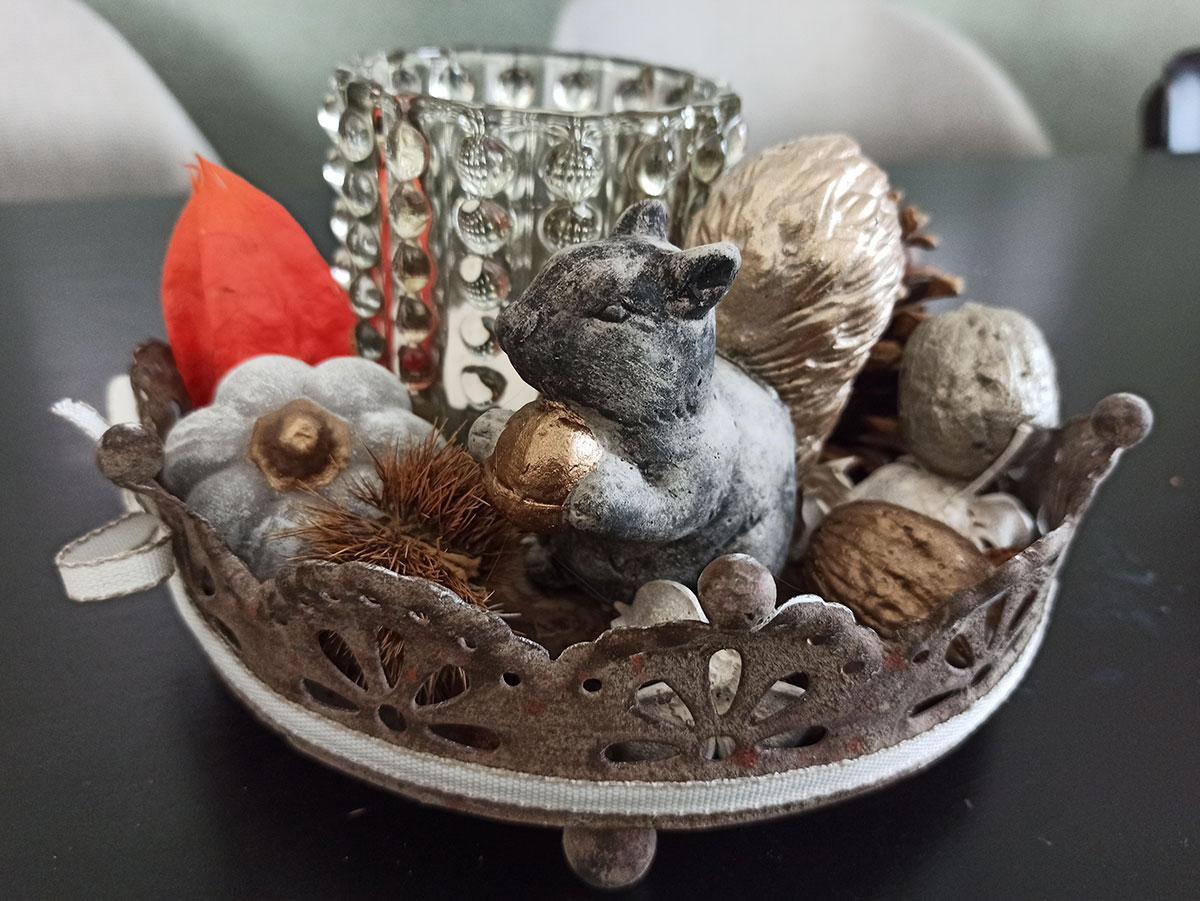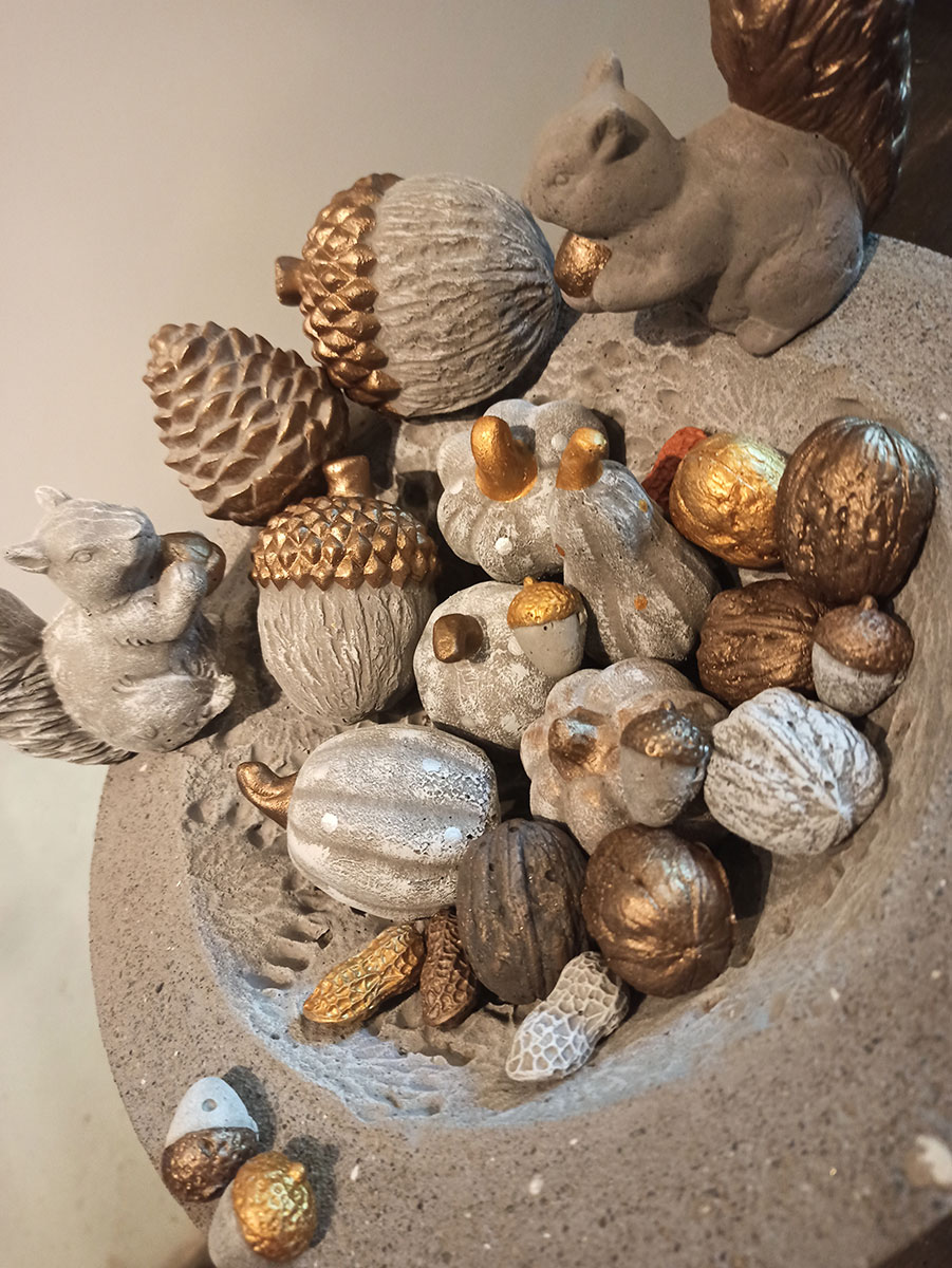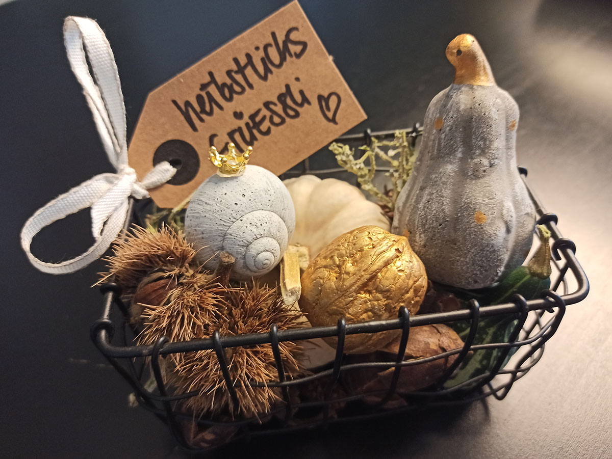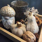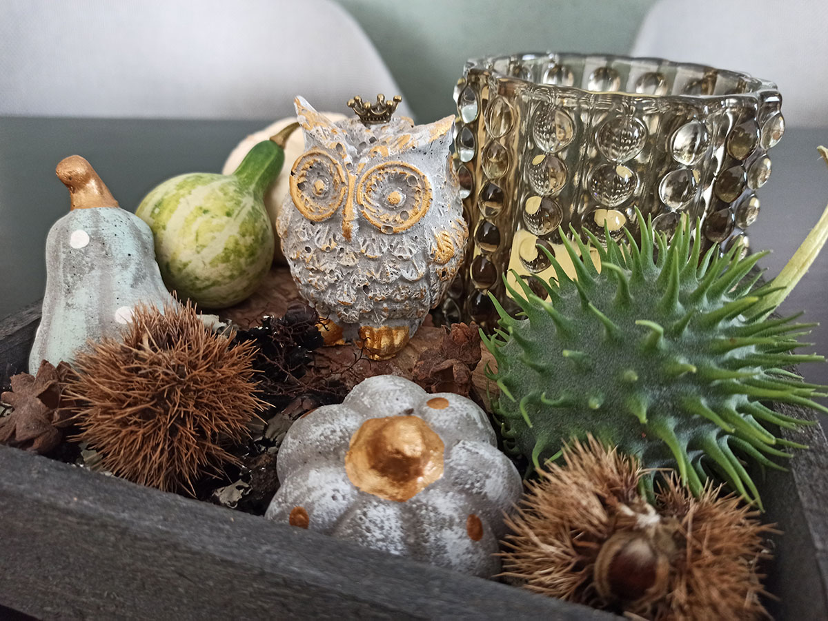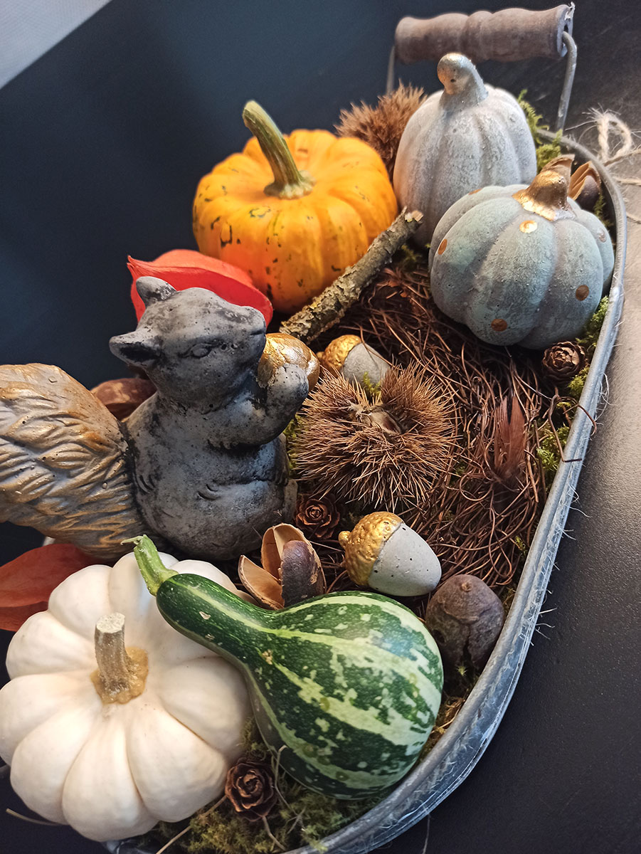 Ja, tatsächlich sind wir schon wieder eine Jahreszeit weiter. Die ersten Blätter fallen geschmeididg von den Bäumen und landen sanft auf der kühlen Erde. In meinem Atelier kommt nun wieder die Zeit von Eichelmännchen, Eicheln, Eichhörnchen, Kürbis und vielen weiteren herbstlichen Schmuckstücken.
