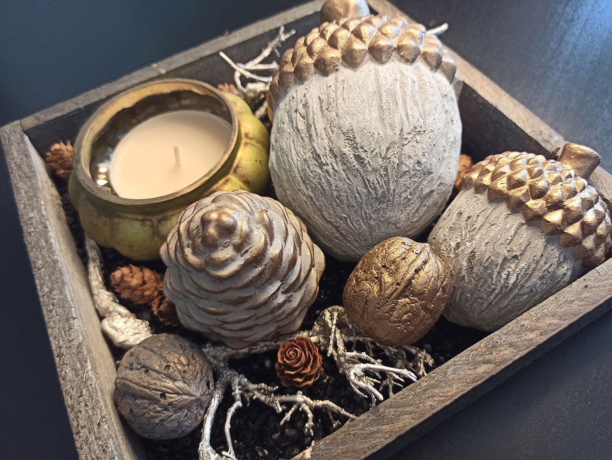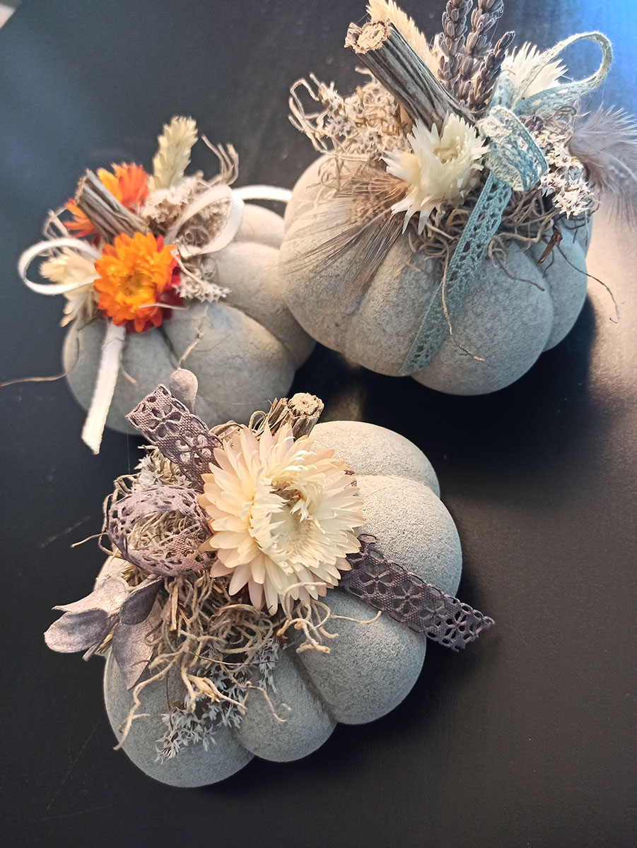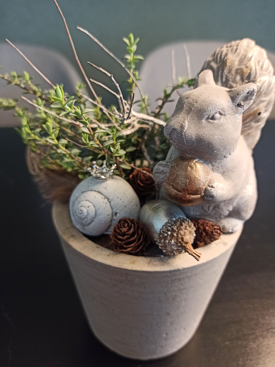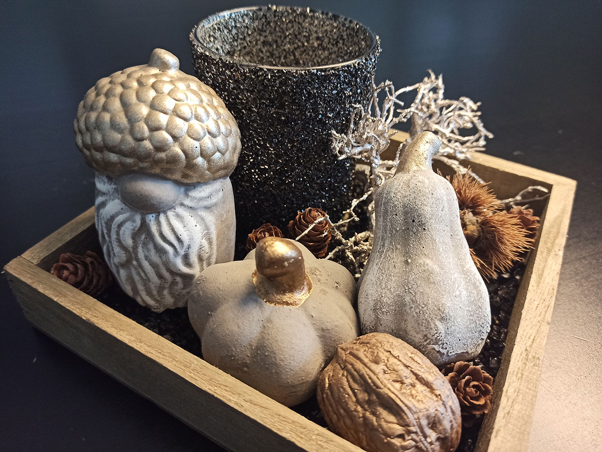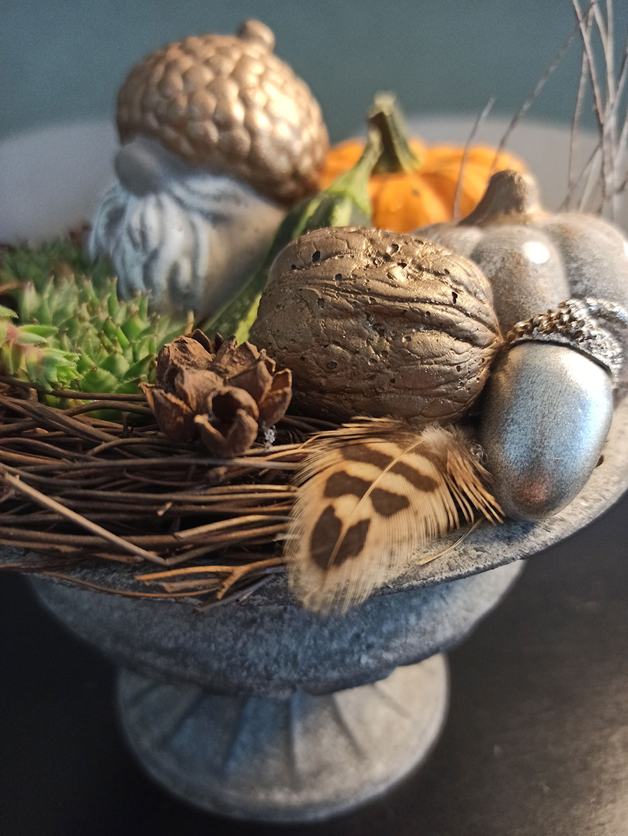 Ja, tatsächlich sind wir schon wieder eine Jahreszeit weiter. Die ersten Blätter fallen geschmeididg von den Bäumen und landen sanft auf der kühlen Erde. In meinem Atelier kommt nun wieder die Zeit von Eichelmännchen, Eicheln, Eichhörnchen, Kürbis und vielen weiteren herbstlichen Schmuckstücken.