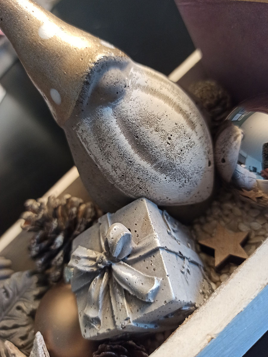 Wow, die Zeit vergeht wie im Fluge. Erst waren wir noch im Garten beim gemütlichen Grill. Jetzt ist das Laub von den Bäumen gefallen und es brennen bereits die ersten Lichterketten in den Fenstern, an den Häusern und an den Balkongeländern. Ja, die besinnliche Weihnachtszeit hat begonnen. Im Atelier wurden sackweise Zement, Sand, Kies und Wasser verarbeitet. Der Farbpinsel hat kaum Zeit zu trocknen. Die Produktion läuft auf Hochtouren um Euch mit wunderschönen «Schmuckstücken» durch den Advent zu begleiten oder als Geschenk Freude zu bereiten.