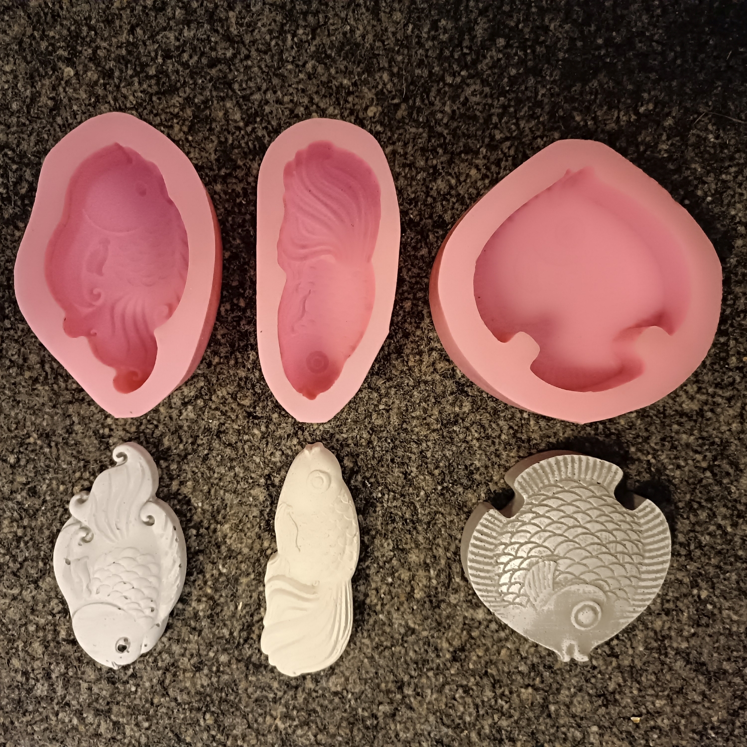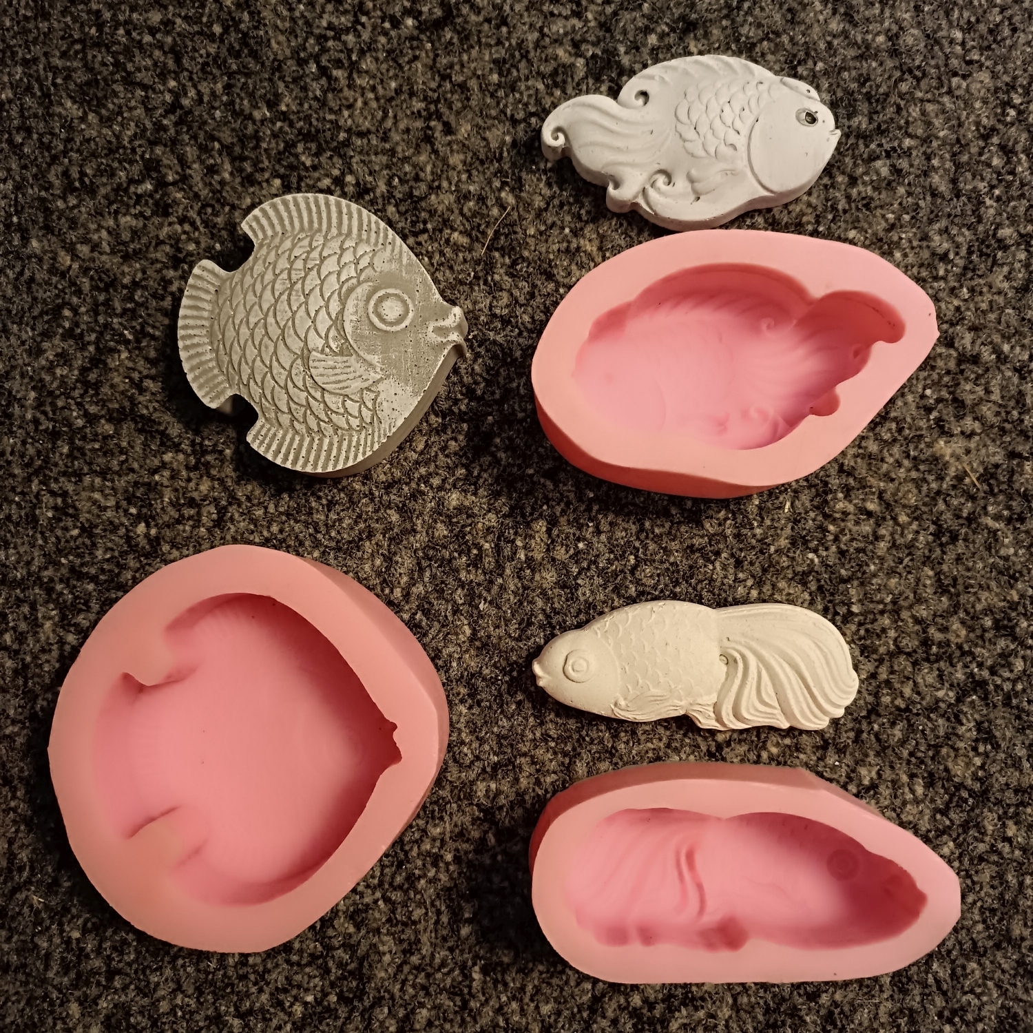Die Giessformen wurden mit Beton, Zement oder Keramikgiessmasse und Farbpigmenten verwendet befüllt worden. Dies hat teilweise sichtbare Gebrauchsspuren/Verfärbungen an der Form hinterlassen. Die Formen sind jedoch in einwandfreiem Zustand und gereinigt.