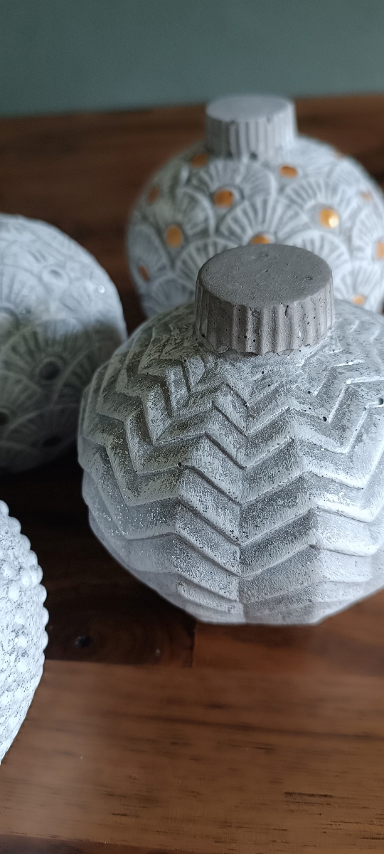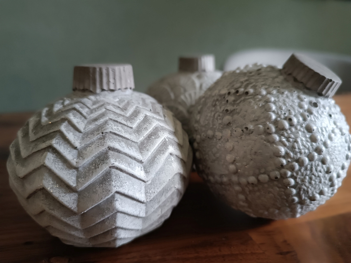 Die Kugeln sind aus Beton und nicht zum Aufhängen an einem Baum geeignet.